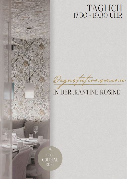 Tauchen Sie ein in ein kulinarisches Erlebnis der Extraklasse und genießen Sie unser saisonal abgestimmtes 5-Gang-Menü der Goldenen Rose.